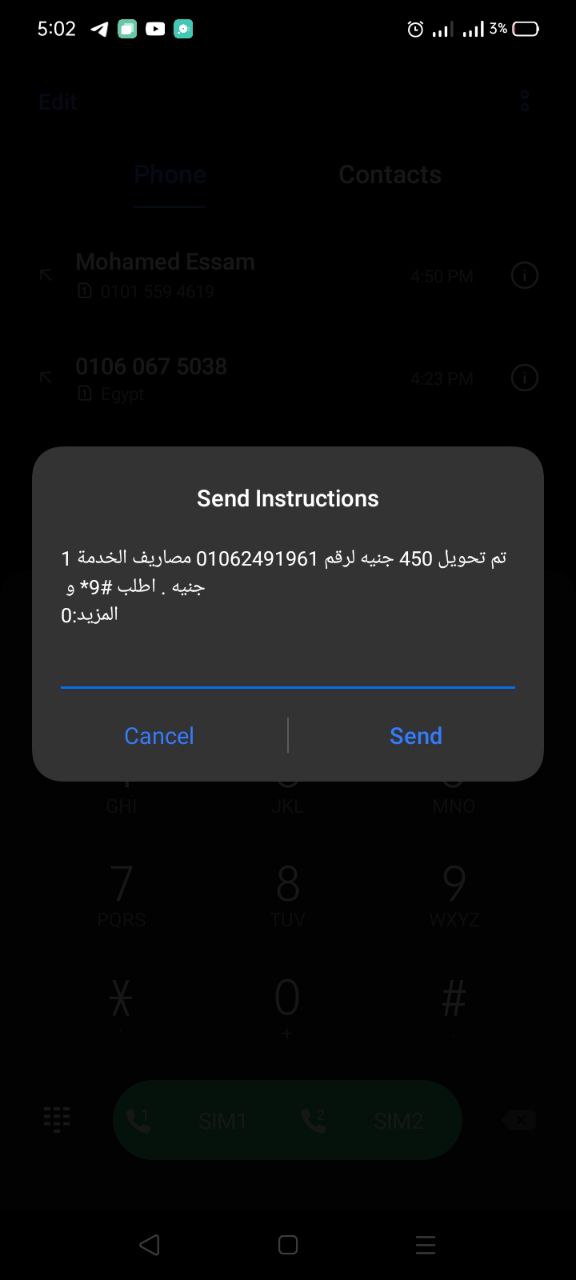 1️⃣ قم بالتحويل عبر فودافون كاش